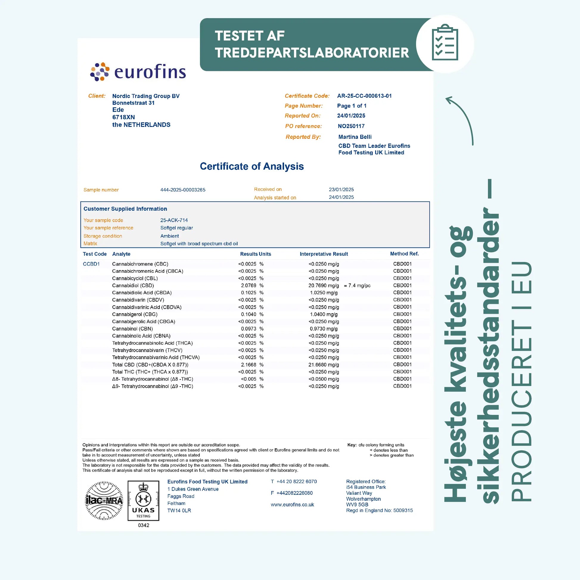 - 6,4 mg CBD pr. kapsel (svarende til en dråbe 15% CBD Olie)