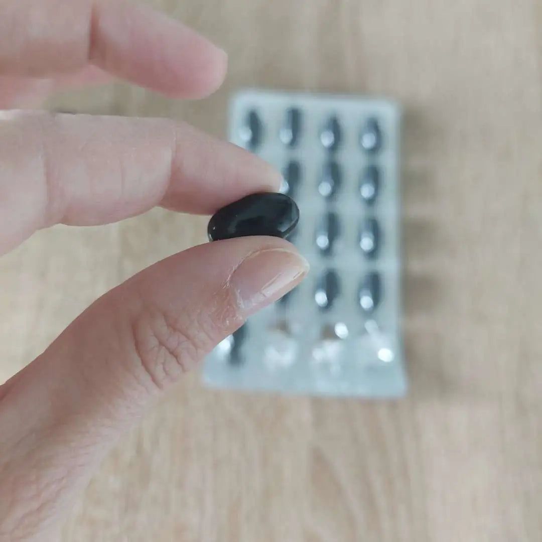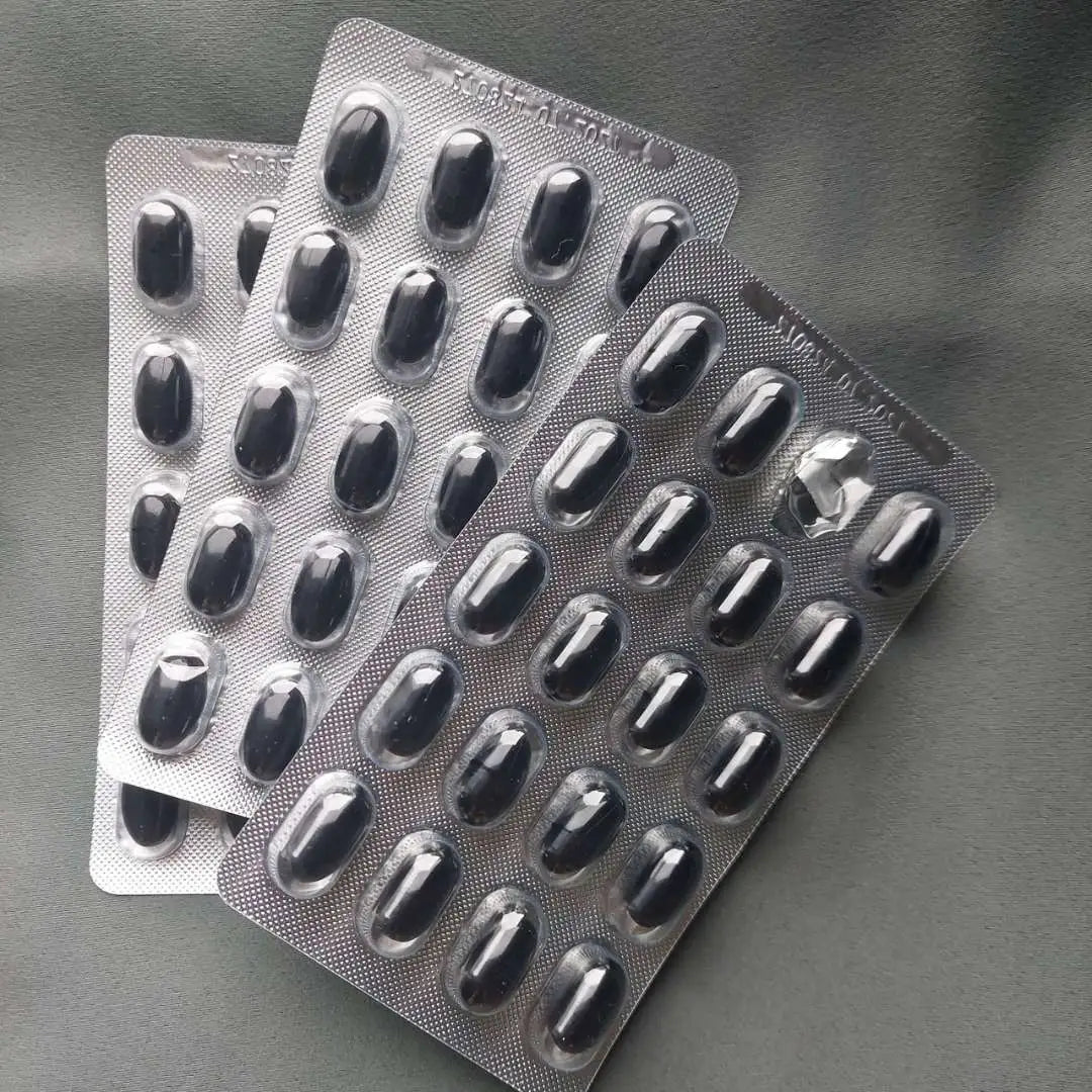 Nigella sativa seed oil, Gelatin, Glycerin, Aqua, Sorbitol, Cannabidiol - derived from extract or tincture or resin of cannabis, Black Iron oxide