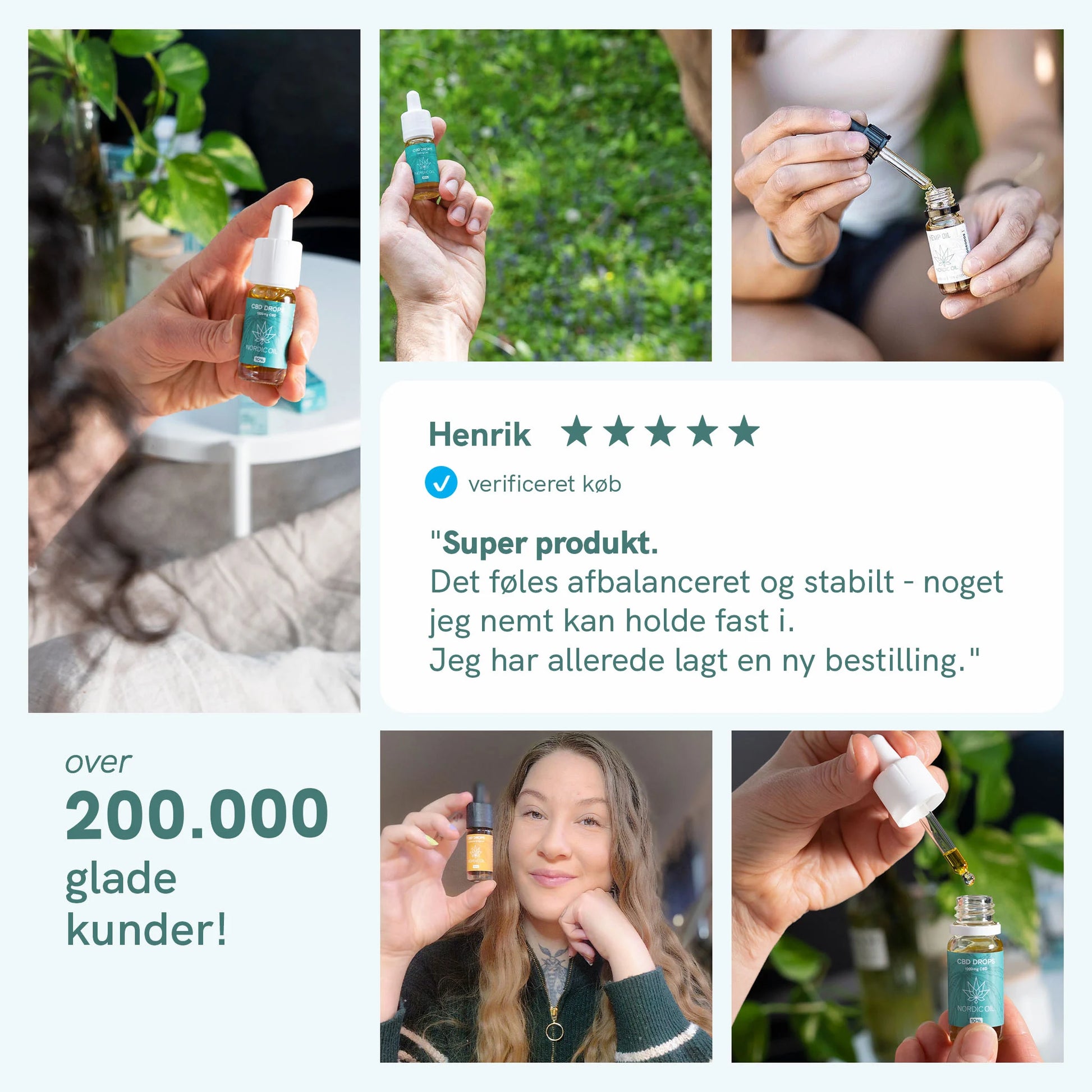 - Hver flaske indeholder omkring 250 dråber (6 mg CBD pr. dråbe)