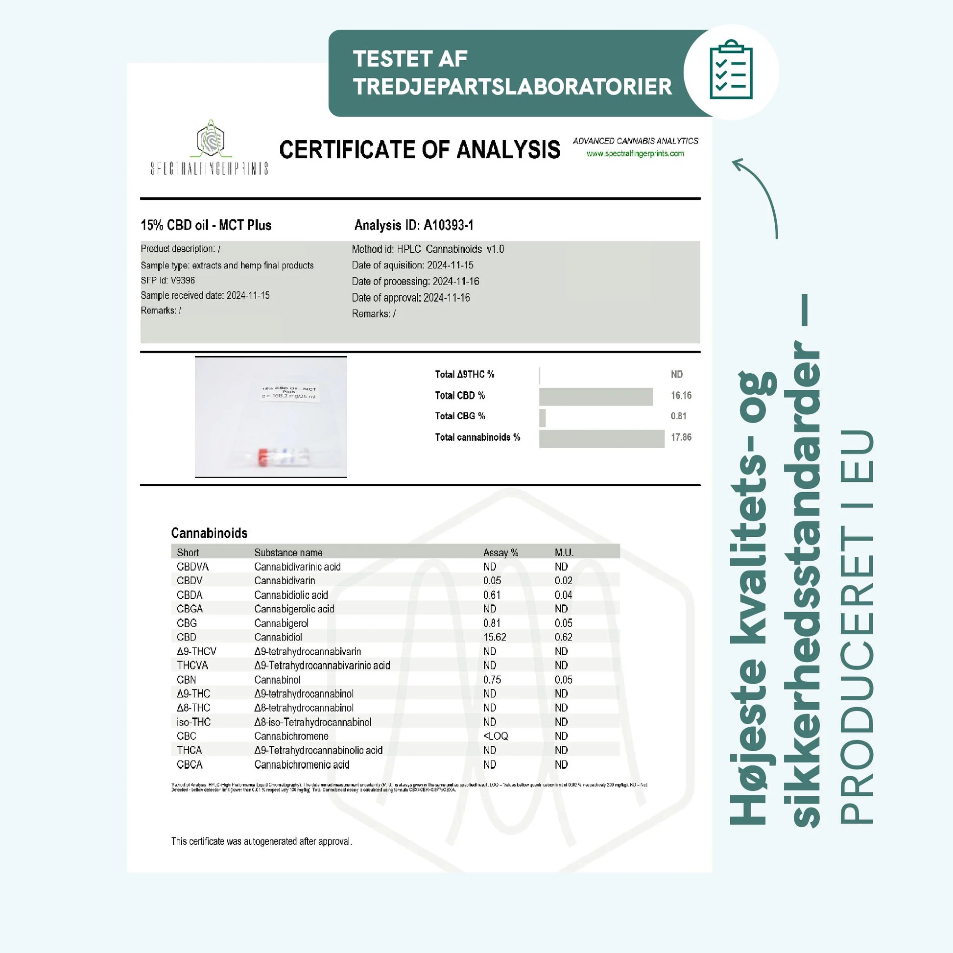 - 3x 10 ml-flaske med 15% CBD-indhold (1500 mg)