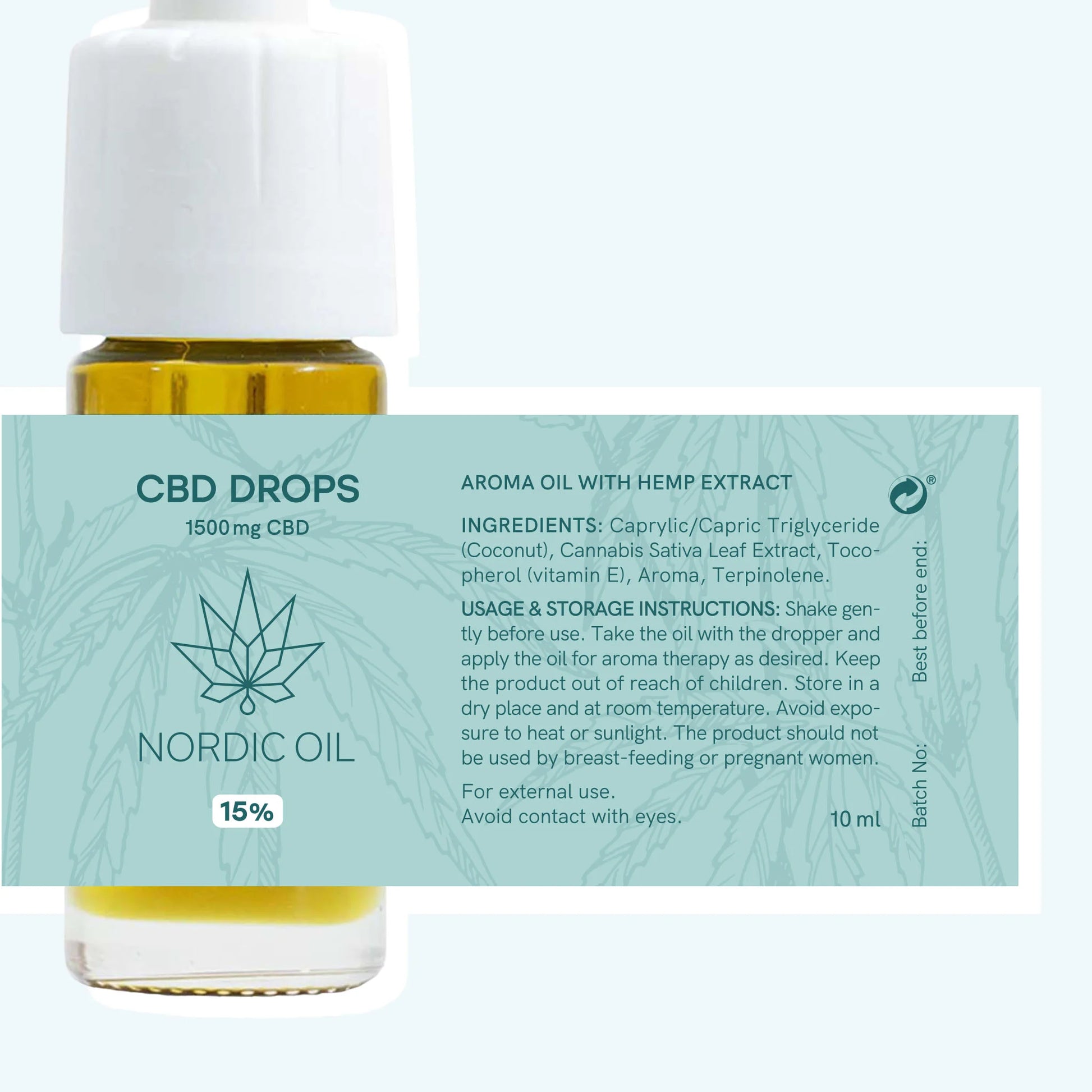 Ryst forsigtigt før brug. Denne 15% CBD-olie er velegnet til aromaterapi og ekstern brug.