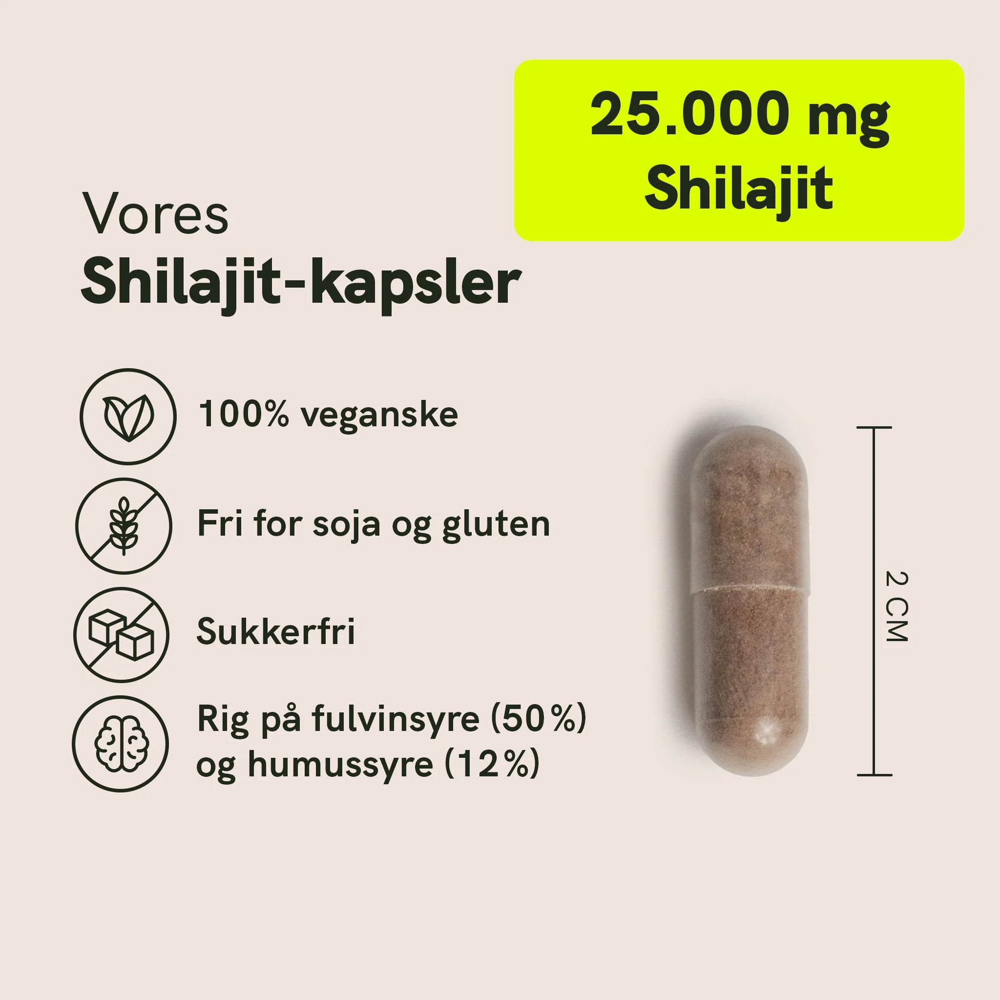 - 500 mg Shilajit-ekstrakt pr. kapsel