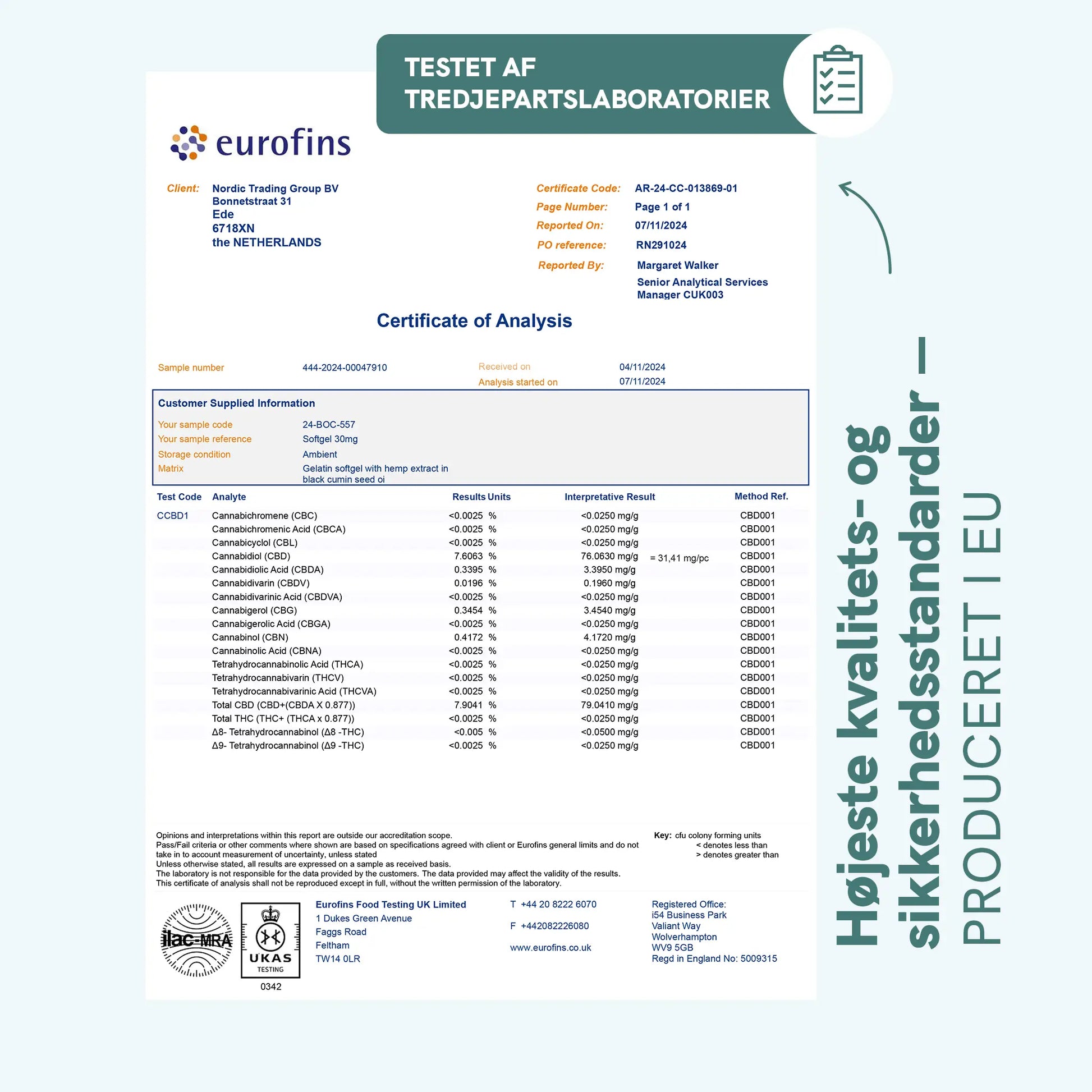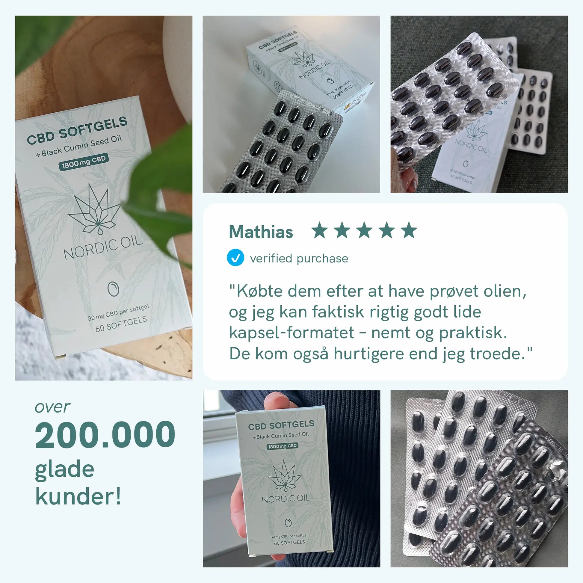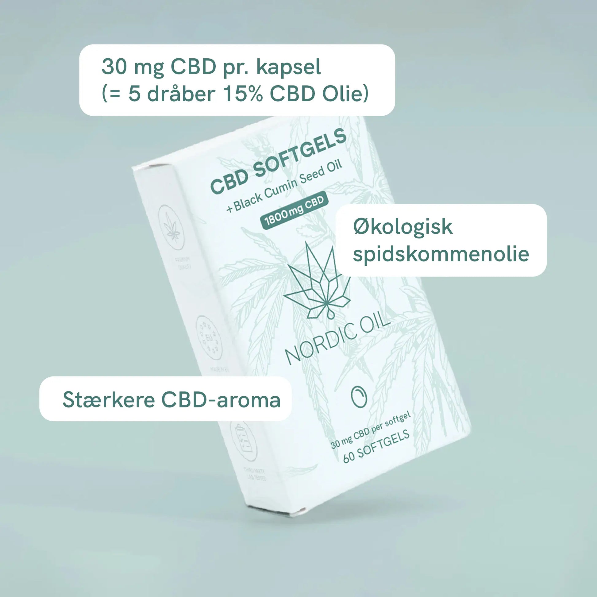 - 30 mg CBD pr. kapsel (svarer til 5 dråber 15% CBD Olie)