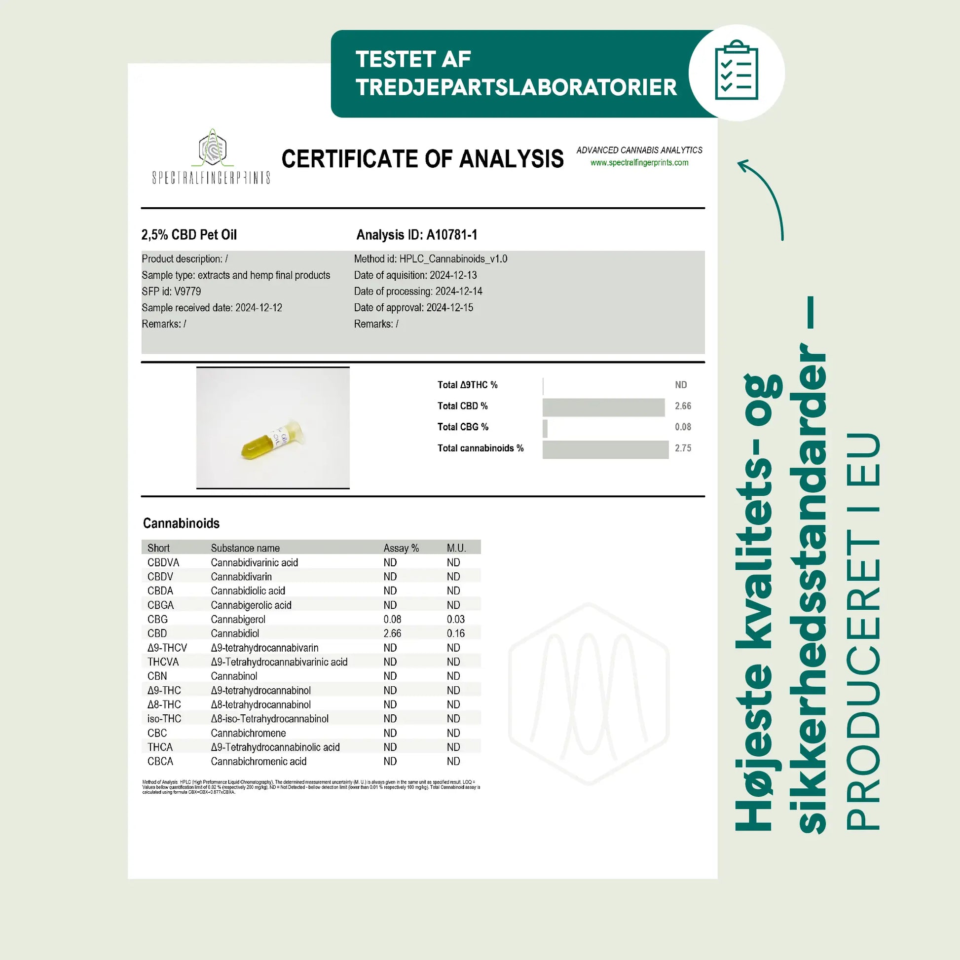 - En 10 ml flaske indeholder 2,5% CBD (250mg)