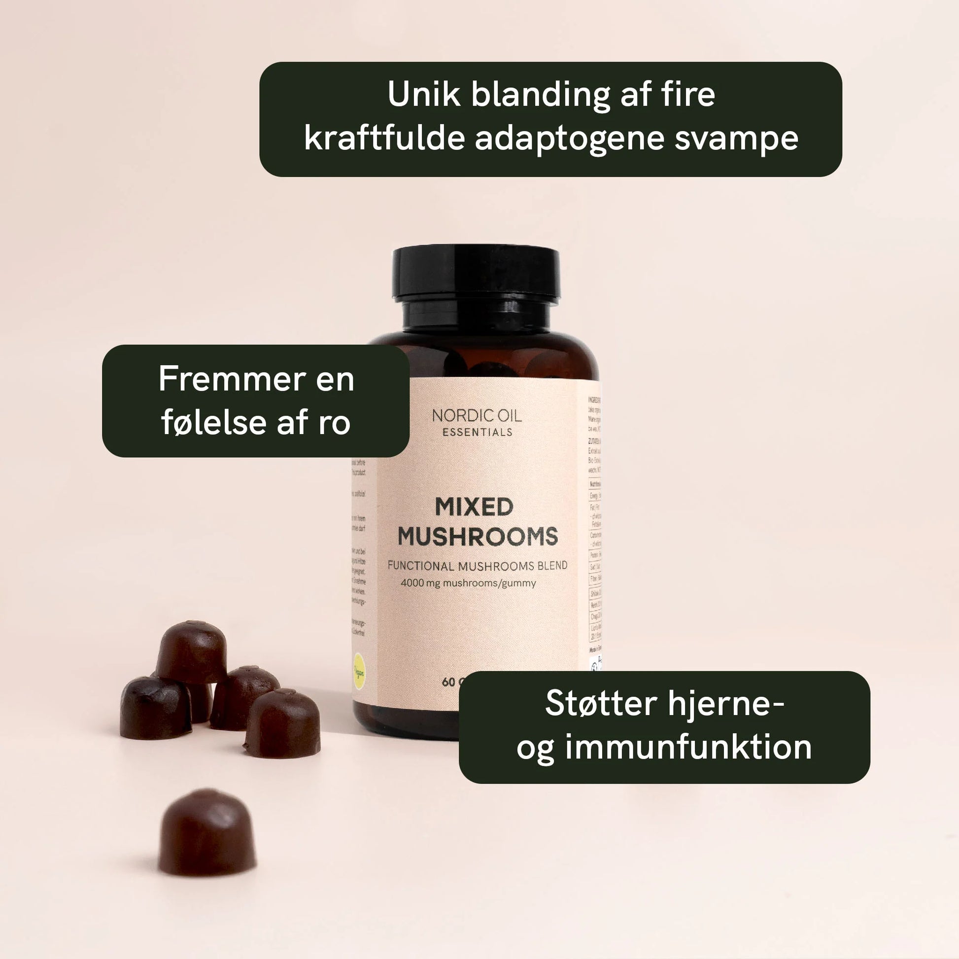 Hver gummy er fyldt med 200 mg økologisk medicinal svampeekstrakt (50 mg per mushroom),