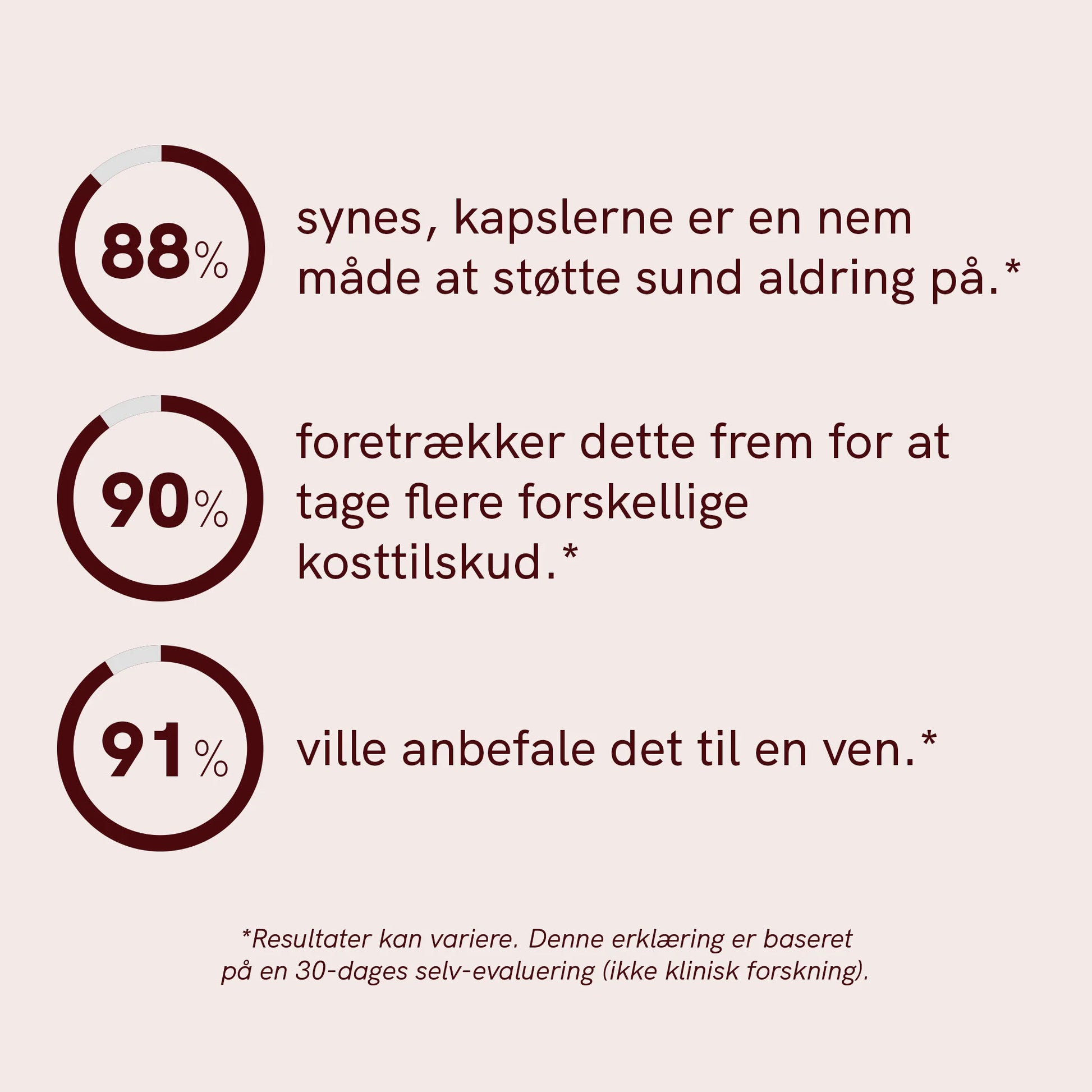 Denne formel er designet med tanke på behovene hos voksne over 50 år. Den indeholder næringsstoffer, som ofte prioriteres i denne fase af livet, f.eks. vitamin B12, vitamin D og omega-3-fedtsyrer. Den udelader også ingredienser, som der generelt ikke er brug for i samme mængder efter middelalderen. Kombinationen giver et velafbalanceret tilskud, der er i overensstemmelse med de typiske kostbehov for denne aldersgruppe - uden at give for mange tilskud eller gøre det for kompliceret.