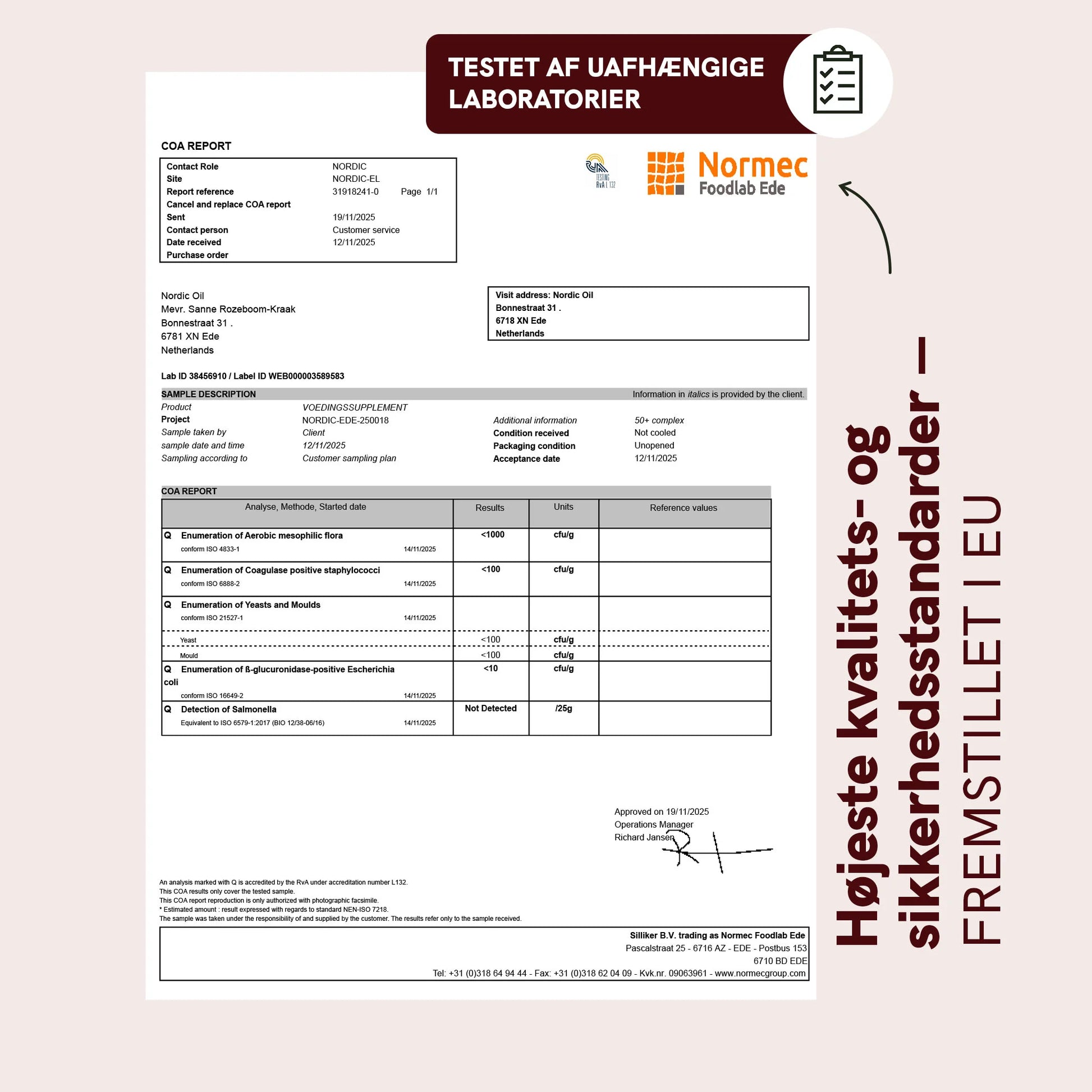 Glutenfri, sojafri, sesamfri og sukkerfri – fremstillet i EU med bæredygtige metoder. Én kapsel om dagen, og du er dækket ind.