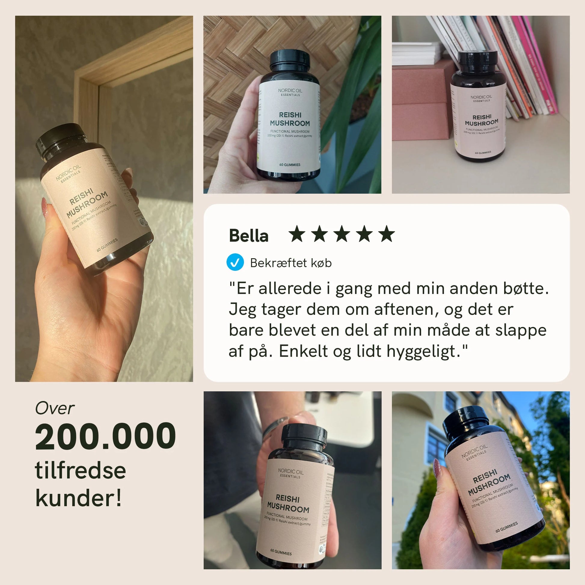 Reishi gummies er en nem og lækker måde at nyde fordelene ved Reishi svampen på, en af de mest anerkendte adaptogener i traditionel medicin. Hver flaske indeholder 60 veganske, gluten- og sukkerfrie gummies, omhyggeligt fremstillet i EU for at leve op til højeste kvalitetsstandarder.