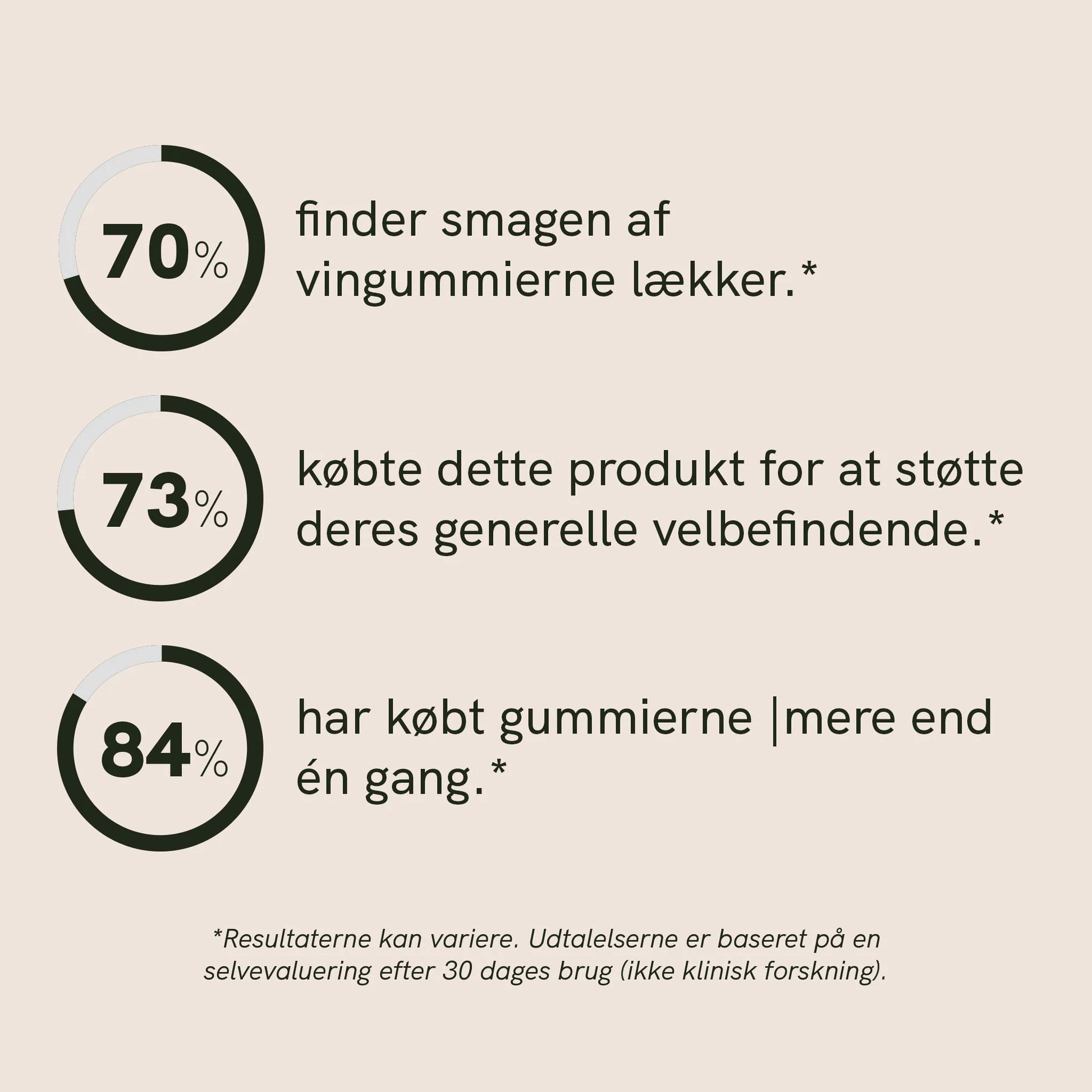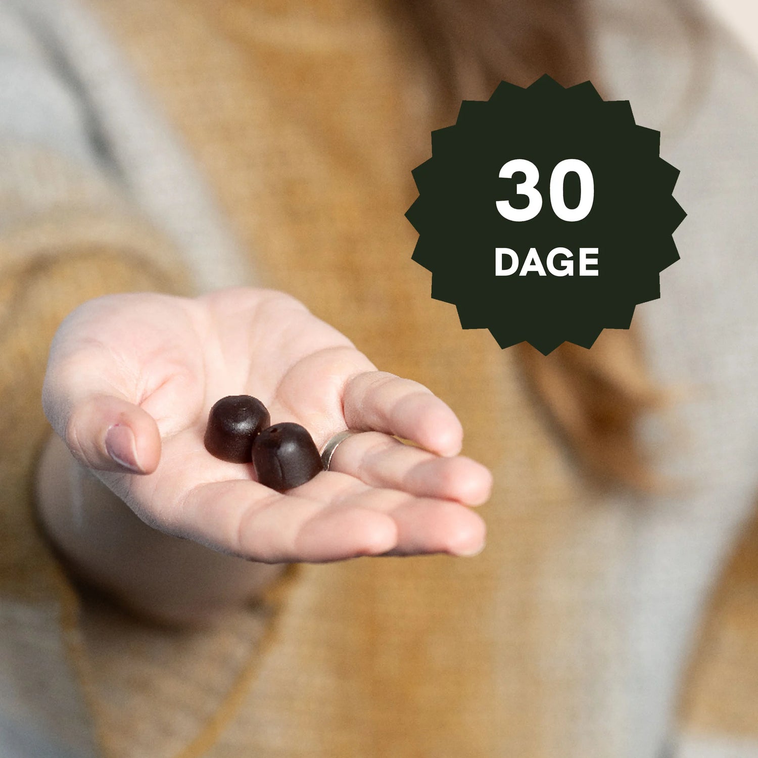Med 60 gummies får du nok til 30 dages forbrug ved den anbefalede dosis på 2 gummies om dagen.