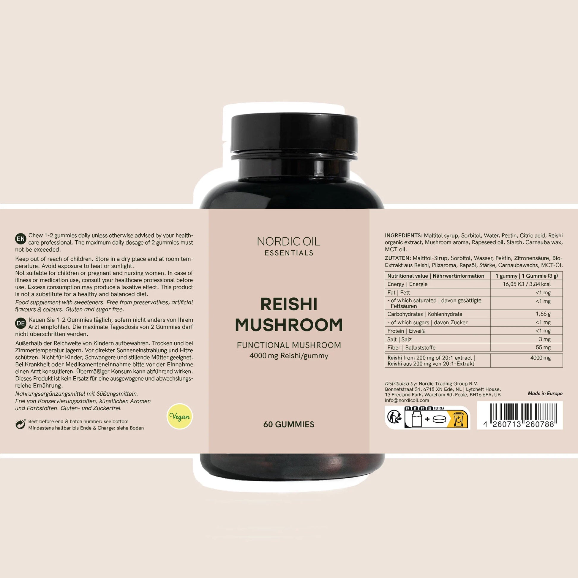 - 60 gummies med 200 mg økologisk Reishi ekstrakt