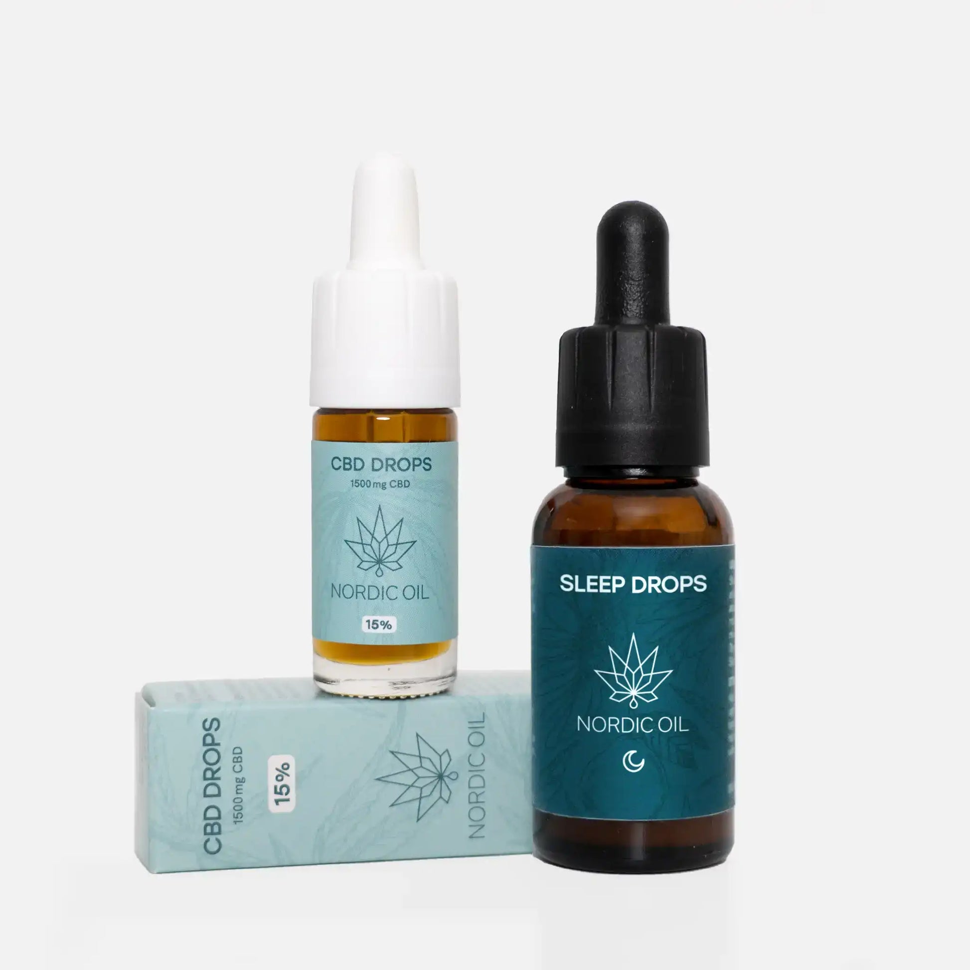 Søvn Dråber - (CBD + Melatonin): Caprylic/Capric Triglyceride, Helianthus Annuus (Sunflower) Lecithin, Chamomilla Recutita (Chamomile) Extract, Citrus Aurantium Bergamia (Bergamot) Essential Oil, Melissa Officinalis (Lemon Balm) Extract and Helianthus Annuus (Sunflower) Seed Oil, Cannabidiol - derived from extract of cannabis, Melatonin, linalool, limonene, citral.