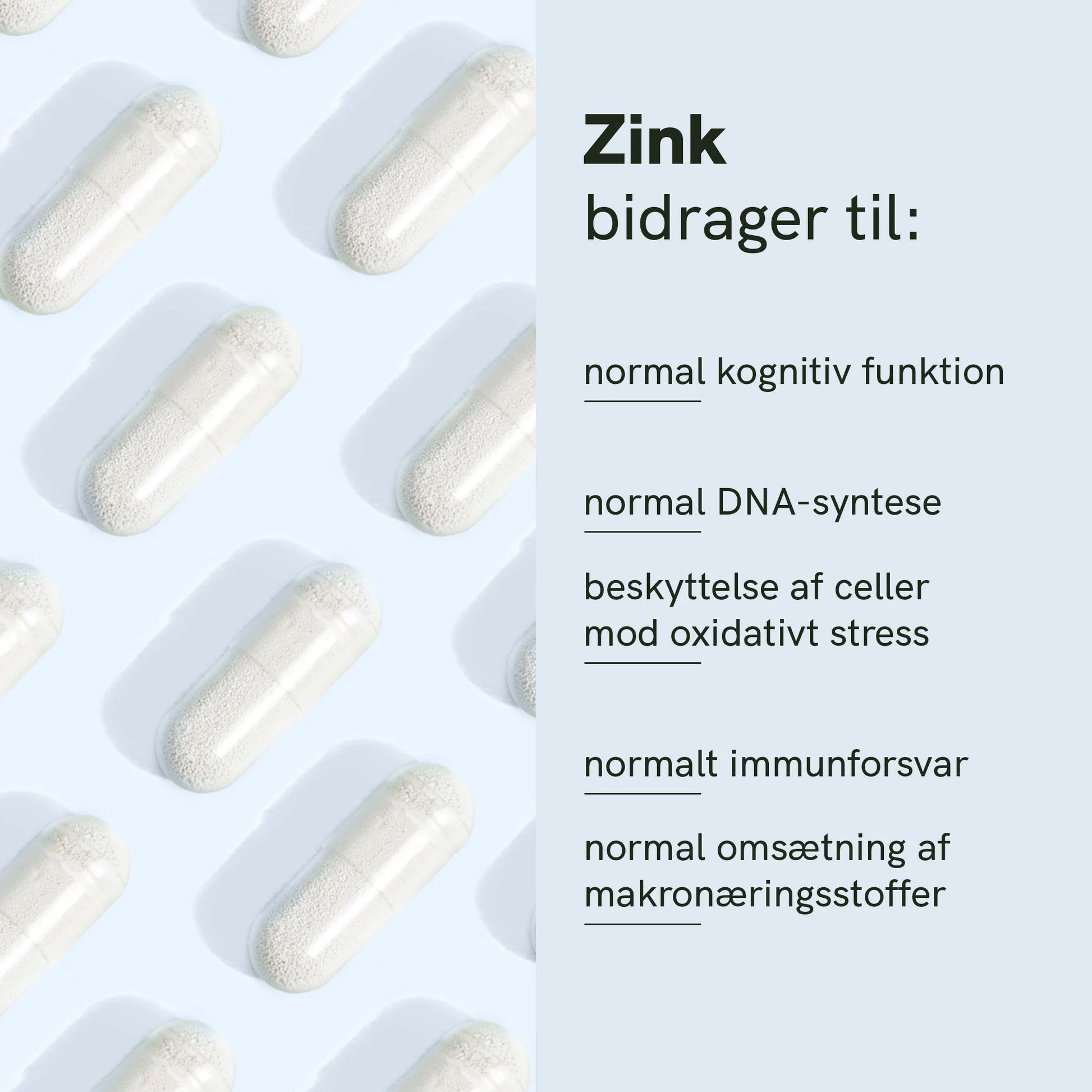 For at supplere dette indeholder formlen zink – et mineral, der bidrager til at vedligeholde normal kognitiv funktion, støtter immunforsvaret, hjælper med omsætningen af makronæringsstoffer og beskytter cellerne mod oxidativt stress. Sammen giver disse næringsstoffer en videnskabeligt funderet kombination inspireret af naturlige, madbaserede mønstre.