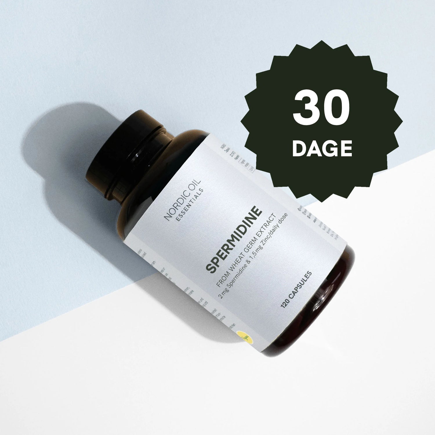 Spermidin-kapsler fra Nordic Oil er formuleret med spermidinrigt hvedekimsekstrakt og giver op til 6 mg spermidin og op til 4,5 mg zink i en fuld dagsdosis på seks kapsler. Spermidin findes naturligt i alle celler og er en polyamin, der spiller en vigtig rolle i cellers vækst, fornyelse og i at støtte både DNA-stabilitet og RNA-aktivitet. Tilsammen er disse funktioner forbundet med sund aldring.