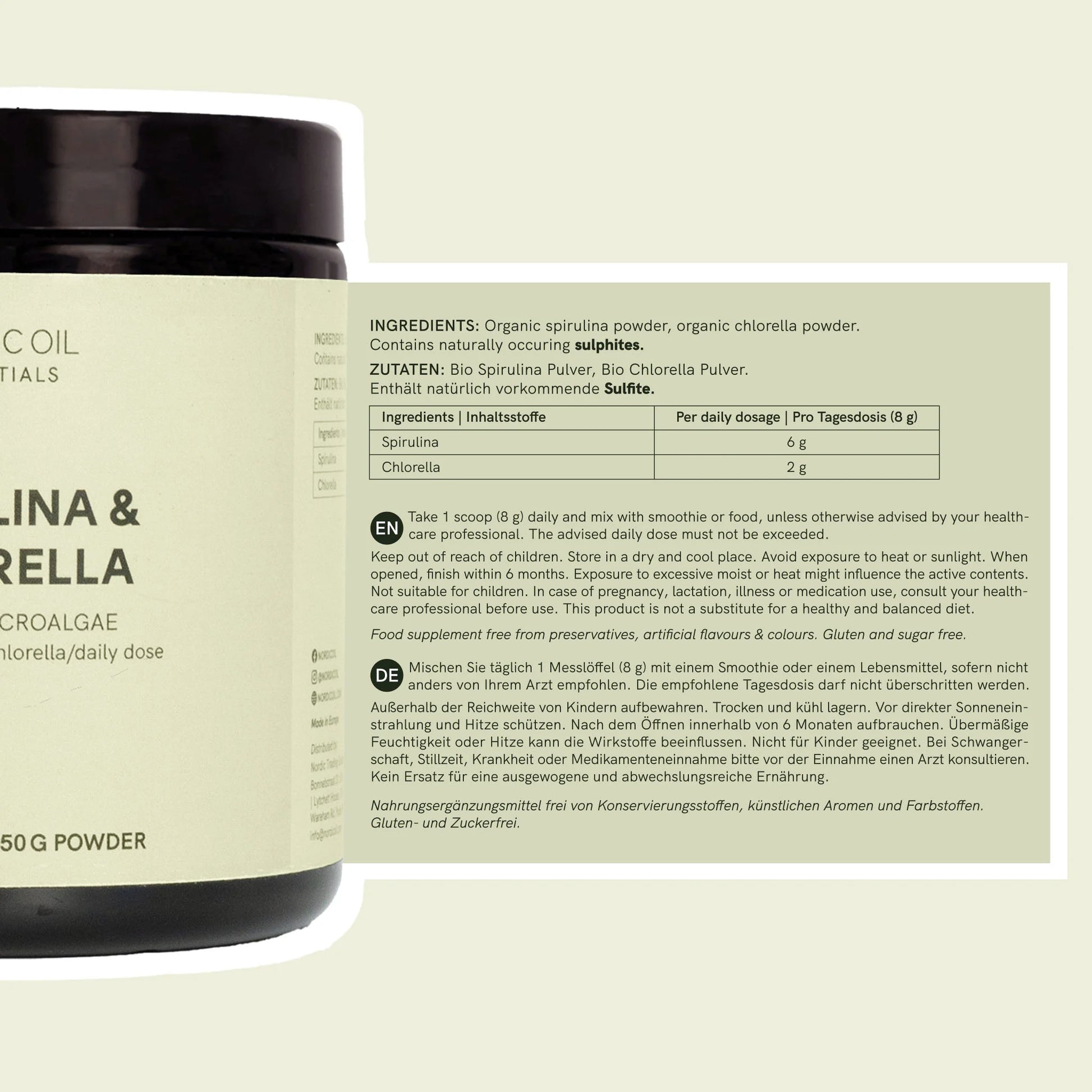 - Økologisk spirulina- og chlorella-pulver til daglig vitalitet*